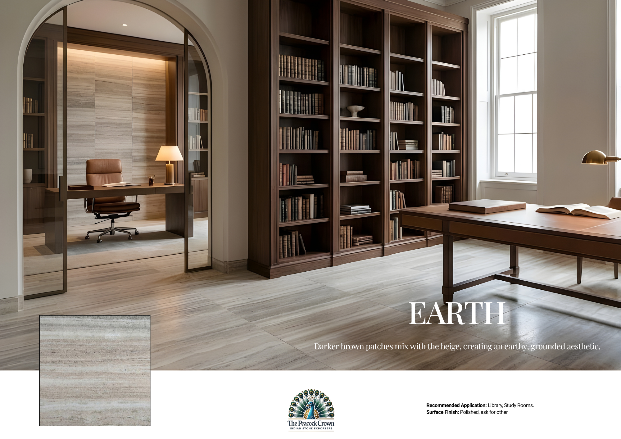 Visual Character: Darker brown patches mix with the beige, creating an earthy, grounded aesthetic.