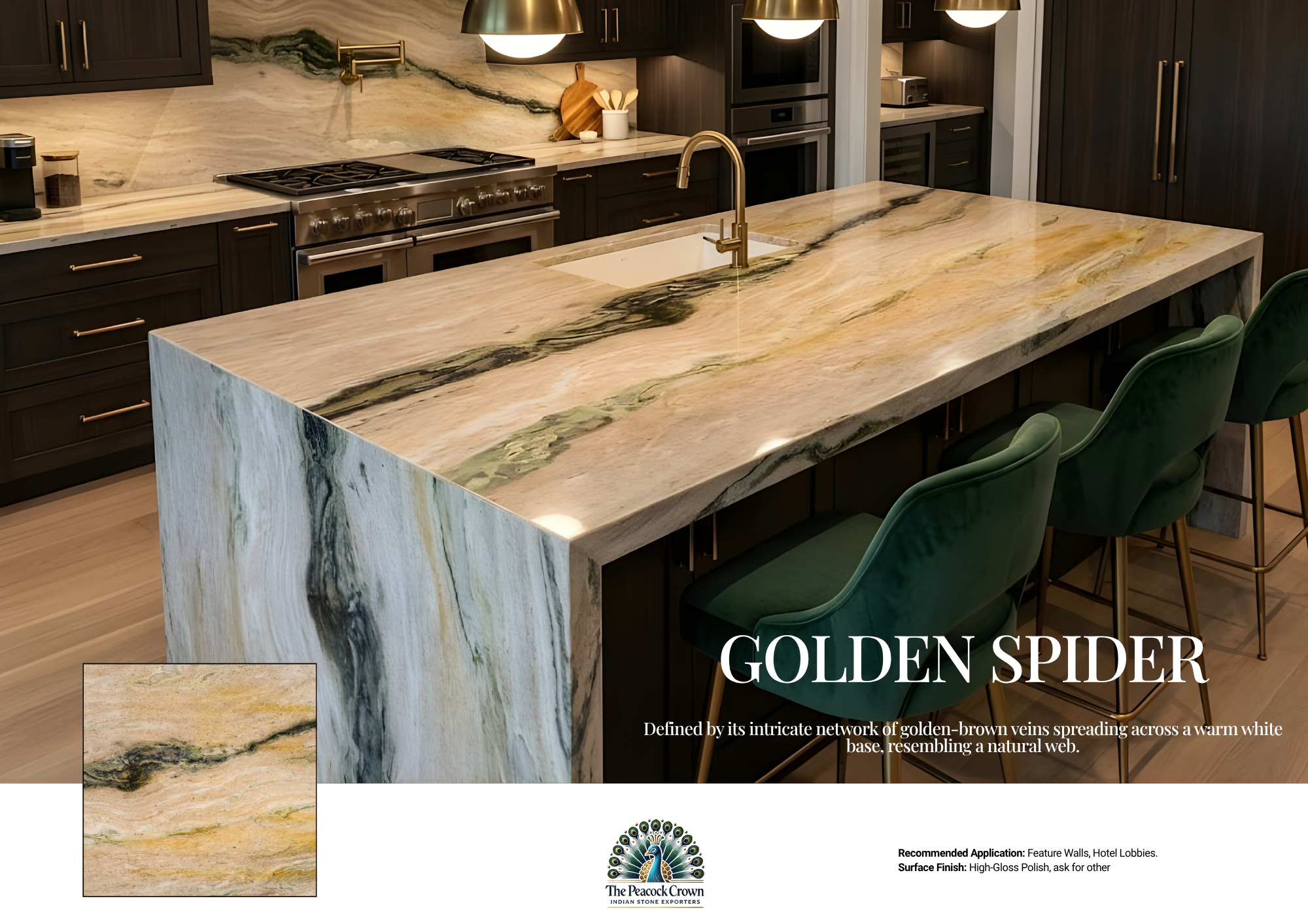 Visual Character: Defined by its intricate network of golden-brown veins spreading across a warm white base, resembling a natural web.