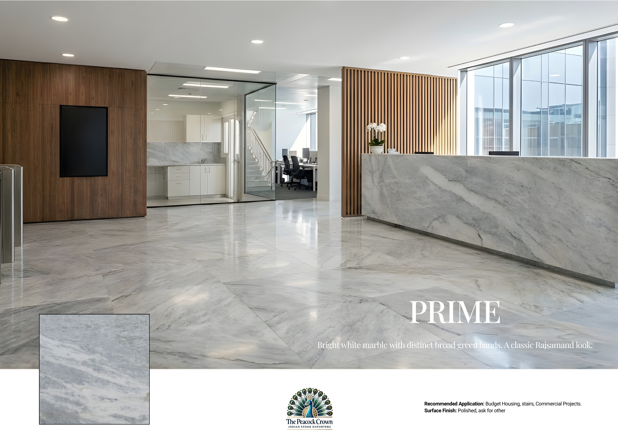 Visual Character: Bright white marble with distinct broad green bands. A classic Rajsamand look.